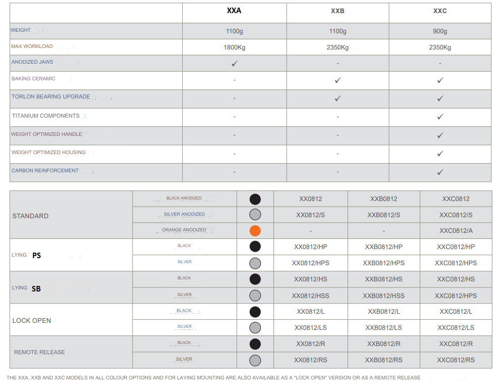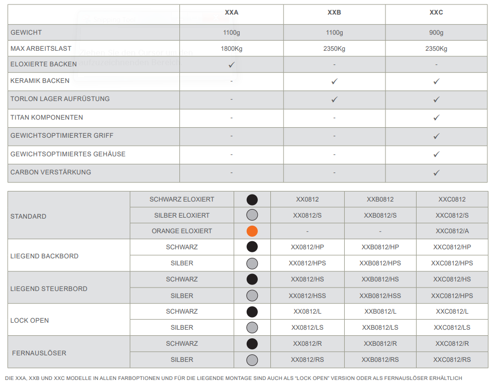 Version für Fernauslösung Für Groß- und Spinnakerfalle u.ä. ermöglicht die Funktion „Lock Open“ ein Fieren der Schot bei geschlossenem Griff Lock Open Version ermöglicht innen liegende Montage Schwarze, Silber oder Orange (Bernstein) (XXC) Ausführung